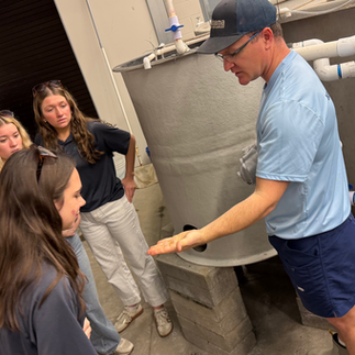 Our day began in Gulf Shores at the Claude Peteet Mariculture Center, where students were welcomed by Hatchery Manager and Biologist Max Westendorf. Max guided the group through the hatchery's inner workings and introduced students to the fascinating world of aquaculture. From water systems and breeding processes to sustainability practices, students gained firsthand insight into how marine life is responsibly raised and managed in our community.